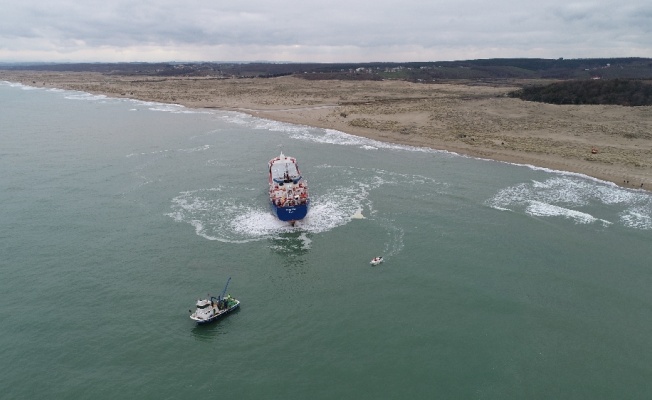 Kocaeli’nin Kandıra ilçesi Babalı sahilinde olumsuz hava şartları nedeniyle karaya oturan Letonya bandıralı kuru yük gemisi, 2 gün süren çalışmalar sonunda kurtarıldı.