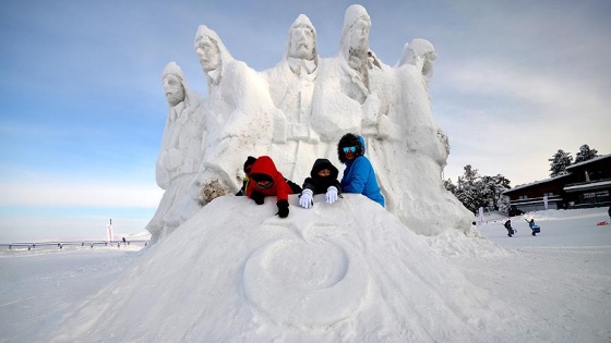 Merkeze gelen kayak tutkunları ve ziyaretçilerden bazıları kardan şehit heykellerinin fotoğrafını çekiyor bazıları da öz çekim yaparak bunları ölümsüzleştiriyor.