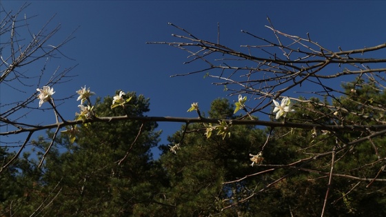 Mevsim normallerinin 10 derece üzerinde seyreden hava sıcaklığı nedeniyle Kastamonu'nun Abana ilçesine bağlı Altıkulaç köyünde meyve ağaçları, kış olmasına rağmen rengarenk çiçeklerle süslenmeye başladı.