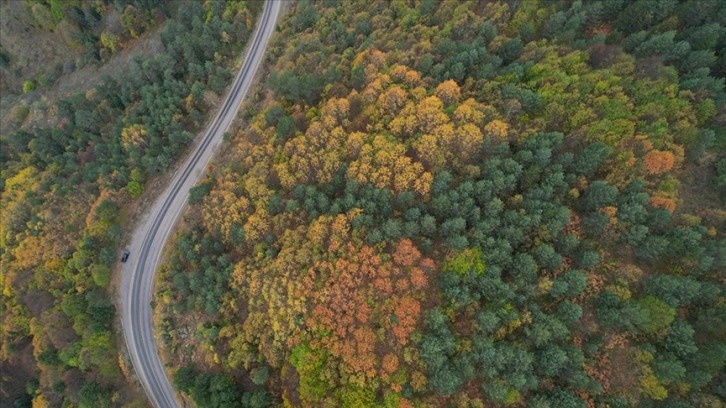 Sonbaharın renk tonlarının hüküm sürdüğü ormanlık alanlar dron ile görüntülendi.