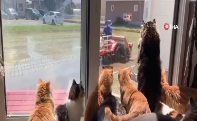 Japonya’nın Akita bölgesinde bulunan Yurihonjo kentinde, sadece kedilerin bulunduğu bir işletmede çok sayıda kedi, işletmenin yanı başındaki tarlayı süren çiftçiyi dakikalarca pür dikkat izledi. Kedilerin çiftçinin her bir hareketini dakikalarca izlediği anların kaydedildiği görüntüler ise sosyal medyada büyük beğeni topladı. Sosyal medyada yayınlanan görüntülerden biri 2,4 milyon, diğeri ise 1,5 milyon kişi tarafından izlendi.