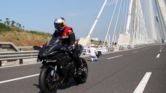 Daha sonra köprüde hız denemesi yapan ve saatte 350 kilometre hıza ulaşan ve bu anlamda rekor kıran Sofuoğlu'na, katılımından dolayı teşekkür plaketi sunuldu.