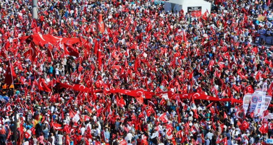 Taksim Meydanı’nda toplanan yüzbinler darbe girişimi sırasında şehit olanlar anısına bir dakikalı saygı duruşunda bulundu. İstiklal Marşının okunulmasının ardından CHP Genel Başkanı Kemal Kılıçdaroğlu, toplanan kalabalığa seslendi.