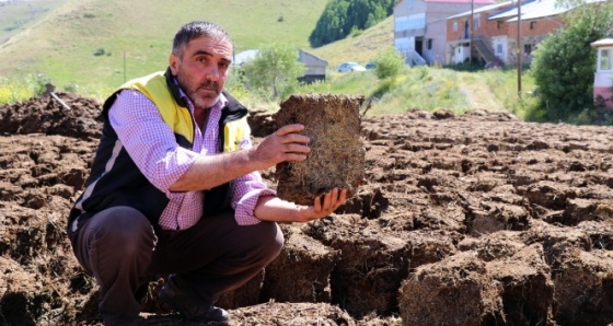 Yapımı 2 ay sürüyor Tezeği yakmak için doğadan geven toplayan ve bununla tutuşturan vatandaşlar yılın 9 ayı soğuk geçen köyde ısınmak ve yemek için daha kullandıkları tandır ve kovalı sobalarda tezeği kullanırken, tezeğin yapım süreci ise tam 2 ay sürüyor. Köy muhtarı Ekrem Hayal, tek gelirlerinin köyde uğraştıkları hayvancılık olduğunu belirterek, “Hayvanların gübrelerini kış boyunca yığıyoruz. Mayıs ayının sonlarında yağmurlar kesildikten sonra süpürüp altını temizleyip basma işlemini yapıyoruz. Daha sonra yayma dönemine geçiyoruz. Harmanın altına saman serip yayma yapıyoruz. 2-3 boyunca da loğ taşıyla eziyoruz iyice. Havanın durumuna göre 1 ay kadar kurumaya bırakıyoruz. Daha sonra kesme aşamasına geçiyoruz. 10 gün kesme işini bitirdikten sonra kurutup zincir aşamasına geçiyoruz. Burada kuruyanları alıyoruz, kurumayanları kumul aşamasına geçirip kurutuyoruz. 2 ayda bu sezon kapanıyor” dedi.