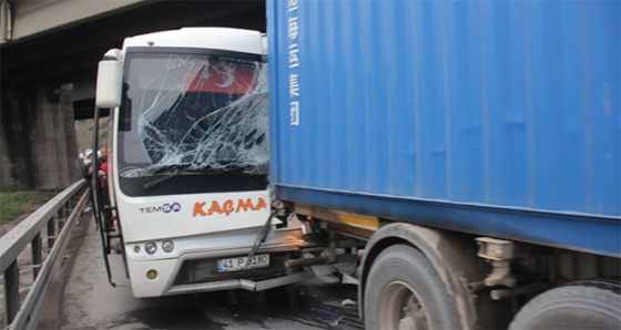 Kaza, saat 17.30 sularında Dilovası Tavşancıl mevkii D-100 karayolu Ankara istikametinde meydana geldi. Edinilen bilgilere göre, demir yüklü 41 VL 640 plakalı tır, sürücünün direksiyon hakimiyetini kaybetmesi sonucu yol kenarındaki bariyerlerin üzerine çıktı. Kazayı gören Mehmet K., kullandığı 41 YN 803 plakalı tırı 50 metre geride yavaşlattı. Bu esnada Oktay O. idaresindeki 41 0180 plakalı midibüs, tırın yavaşladığını fark edemeyerek arkadan çarptı. Kazada midibüste bulunan 7 kişi çeşitli yerlerinden yaralandı. Yaralılardan bazıları ise araç içerisinde sıkıştı. Kazayı görenlerin haber vermesi üzerine olay yerine çok sayıda itfaiye ve sağlık ekibi sevk edildi. Midibüs içerisinde sıkışan yaralılar itfaiye ekipleri tarafından kurtarılarak sağlık ekiplerine teslim edildi. Sağlık ekiplerince ilk müdahalesi olay yerinde yapılan yaralılar çevre hastanelere sevk edildi. Kaza nedeniyle D-100 karayolunda trafik kontrollü olarak tek şeritten sağlandı. Polis, kaza ile ilgili inceleme başlattı.