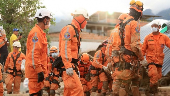 Baraj gölünde, Kolombiya ordusu ve çevre kentlerden gelen arama kurtarma görevlilerinden oluşan ekipler, kayıpları arama çalışması yürütüyor.