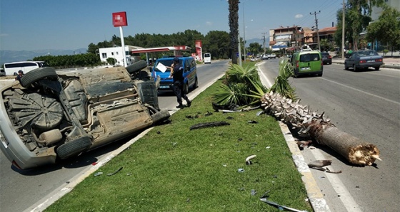 Edinilen bilgiye göre, Manavgat istikametinden Side-Kumköy istikametine seyir halindeki Ali Kocagöz'ün kullandığı 07 L 9788 plakalı otomobil, refüj bordürü ve refüjdeki palmiyeye çarpıp devrildi.