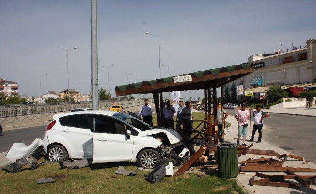 Antalya’nın Manavgat ilçesinde kontrolden çıkan otomobil taksi durağına daldı. Kazada şans eseri kimse yaralanmazken durakta oturan taksici aracı fark ederek kendini duraktan dışarı attı.