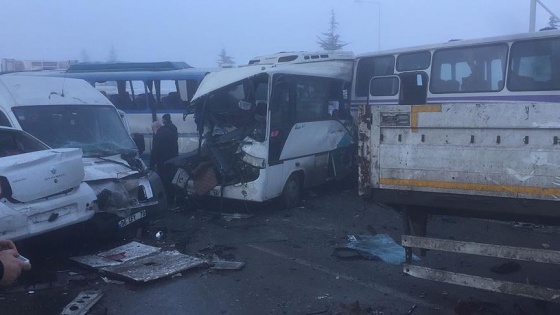 Alınan bilgiye göre, Konya-Ankara karayolu ASTİM Sanayi sitesi yakınlarında, yoğun sis ve buzlanma nedeniyle çok sayıda aracın karıştığı zincirleme trafik kazası meydana geldi.