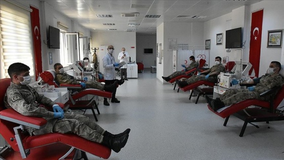 Türk Kızılay Orta Karadeniz Bölge Kan Merkezi Müdürlüğünün Samsun'un Canik ilçesindeki kan alma merkezine gelen askerler, immün plazma bağışında bulundu.