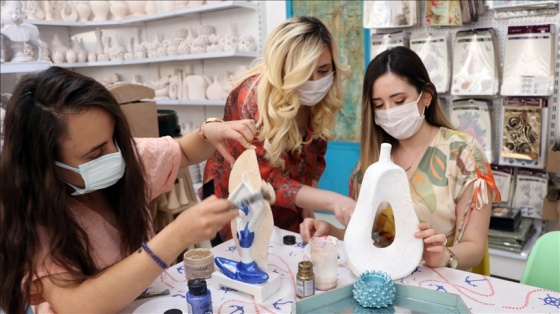 İş yerinde ahşap, seramik, polyester, cam ve kumaş boyama yaptıklarını anlatan Coşkun, "Aynı zamanda eski ürünleri yeniliyoruz. Pandemi dönemi bir yandan çok iyi oldu. Evlerindeki ürünleri yenilediler, ailecek boyama yaparak keyifli zaman geçirdiler." dedi.