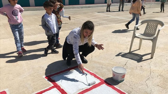 Şanlıurfa'nın Suruç ilçesinde öğretmenler, öğrencileri için okulun bahçesinde kendi elleriyle basketbol ve voleybol sahaları ile oyun alanları hazırladı.