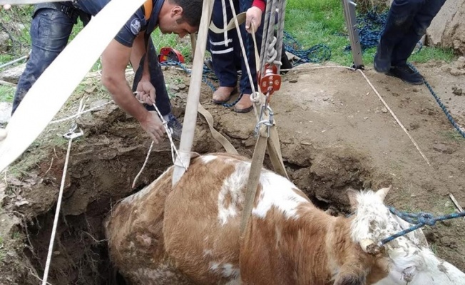 Edinilen bilgiye göre, merkeze bağlı Nurali köyünde kuyunun çökmesi sonucu inek içine düştü. Kuyuda mahsur kalan inek için sahibi Elazığ Belediyesi İtfaiye Müdürlüğü’nden yardım istedi. Olay yerine giden ekipler, ineğe halat bağlayarak kurdukları sistemle yukarı çekti. Yaklaşık 1 saat süren kurtarma çalışması sonrası kuyudan çıkarılan inek sahibine teslim edildi.