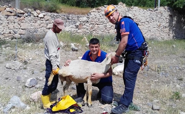 Niğde’de 15 metrelik su kuyusuna düşen koyunu AFAD ekipleri kurtardı.