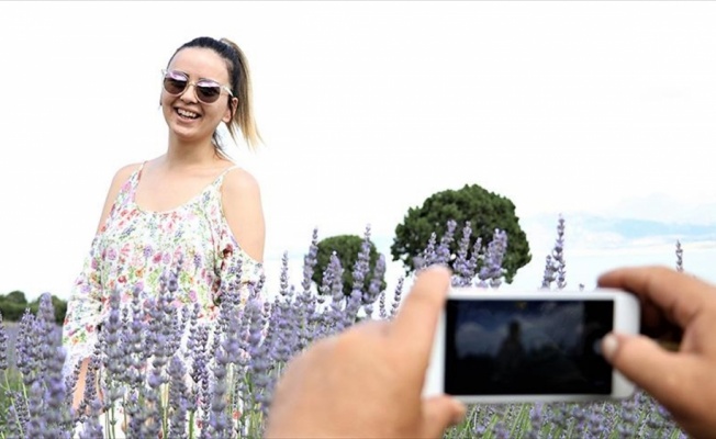 BURDUR(AA) - Burdur Belediyesince hazırlanan programla Lisinia Doğa Merkezi'ne düzenlenen ücretsiz turlara katılanlar, burada hem lavanta hakkında bilgi alıyor hem de lavantalar arasında fotoğraf çektiriyor.