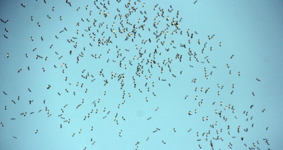 Mart, nisan aylarında Afrika'dan Türkiye'ye gelen baharın müjdecisi leylekler sonbaharın gelmesiyle dönüşe geçti. Göç yolundaki leylekler gökyüzünde görsel bir şölen sundu. Leylek sürüleri izleyenleri kendilerine hayran bıraktı.Gökyüzünde süzülerek uçan leylekler bir süre sonra gözden kayboldu.