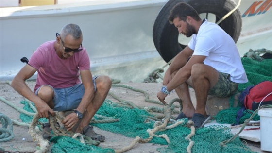 Çanakkale, Yalova ve Balıkesir'de balıkçılar, 15 Nisan'da başlayan yasak dönemini teknelerinin ve ağlarının onarımıyla geçirdi.