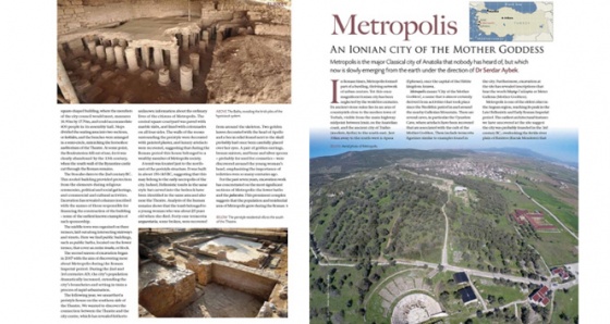 İzmir’in Torbalı ilçesindeki Metropolis Antik Kenti, İngiltere’de yayımlanan Current World Archaeology dergisine kapak oldu. Altı sayfalık tanıtımda kentin arkeolojik değerleri paylaşıldı.