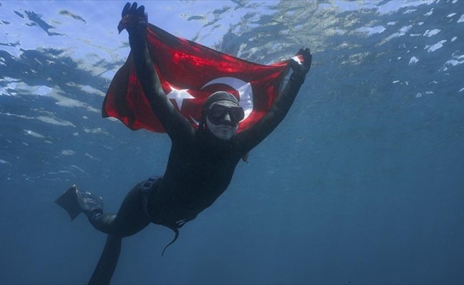 Ercümen, su sıcaklığının sıfır derece olduğu bölgede, soğuğa karşı özel bir koruyucusu olmayan elbiseyle 2 dakika süren bir serbest dalış yaptı.