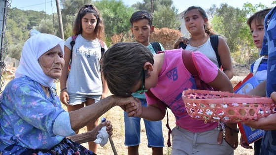 Bodrum'da, yaşları 6 ile 13 arasında değişen 10 çocuk, Ege Denizi'nde yaşanan 6,5 büyüklüğündeki depremde evleri zarar görenlere yardım etmek için topladıkları deniz kabukları ve ailelerinin verdiği takıları satıp elde ettikleri bin 420 lirayı, depremzede Ayşe Küçükköse'ye bağışladı.