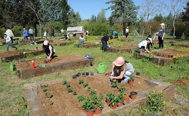ADANA (AA) - Çukurova Üniversitesi bünyesinde kurulu Ali Nihat Gökyiğit Botanik Bahçesi'nde, ilkokul öğrencileri kendileri için oluşturulan küçük tarlalarda biber, domates, çilek, fasulye ve maydanoz yetiştiriyor.
