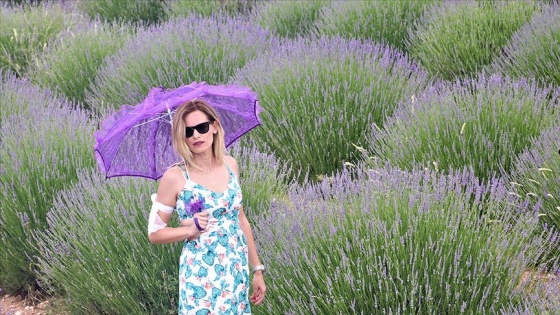 Köyde yerli üreticilerin kurduğu tezgahlarda lavantaya dair ürünleri satın alma fırsatı bulan ziyaretçiler, mor tarlalarda fotoğraf çektirerek bu renkli anları ölümsüzleştiriyor.