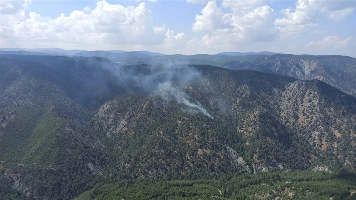 İhbar üzerine yangına 2 helikopter, 2 arazöz ve orman işçileri ile müdahale edildi.