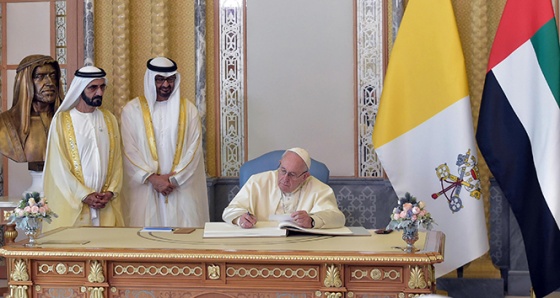Yazar Malbrunot, BAE'nin Batı ile, dinlerarası diyalog gibi bazı değerleri paylaşır gibi göründüğünü de belirterek, El Ezher Şeyhinin Papa'nın ziyaretinde hazır bulunmasının bir tesadüf olmadığını, çünkü, Abu Dabi'nin Abdulfettah Sisi yönetimi altındaki Mısır'a, Müslüman Kardeşlerle mücadelesine mali destek de sağladığını belirtti.