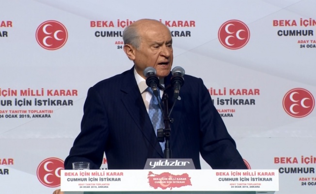 31 Mart 2019 Mahalli İdareler Seçimleri kapsamında çalışmaların günbegün arttırıldığının altını çizen Bahçeli, "Cesur olacağız, özgüven içinde hareket edeceğiz, umutsuzluğu, yanımıza, yöremize sokmayacağız. Kötümserlere ortam açmayacağız. Karamsarlara fırsat vermeyeceğiz. Kara propagandadan geçinenlere karşı birlik içinde olacağız, diri duracağız, saflarımızı sımsıkı tutacağız. Cumhur İttifakı’na bağlı kalacağız, bu kapsamda Milliyetçi Hareket Partisi adaylarının olduğu yerde partimize, AK Parti’nin adaylarının olduğu yerde AK Partiye oy ve destek vereceğiz. Yeni darbe senaryoları dillendirenlerin, bunun için el ovuşturanların başına dünyayı yıkacağız. Seçimi itibarsızlaştırmaya kalkışanlar, sandığın meşruiyetini lekelemeye yeltenenler, yalanlarla hayali seçmen üretildiğini iddia edenler beyhude yere çırpınmasın, alayının oyununu bozacağız. CHP’nin kriz ve kaos siyasetini milli iradenin desteğiyle un-ufak edeceğiz. Sabırla, şuurla, coşkuyla, gözümüzü yüksek ufuklardan ayırmadan, milletimizin bütün fertlerini bir, eşit ve kardeş görerek 31 Mart’ta Cumhur İttifakı’nı ve Milliyetçi Hareket Partisi’ni başarıyla buluşturacağız" mesajını verdi.