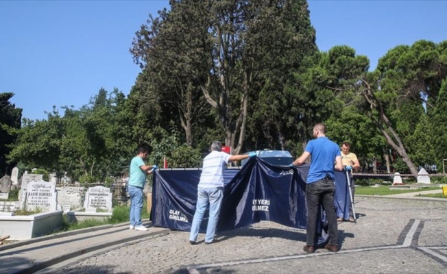 Süleymanoğlu'nun Edirnekapı Mezarlığı'nda bulunan kabrinin çevresi, güvenlik şeridiyle çevrildi. Mezarın çevresine olay yeri inceleme inceleme ekipleri tarafından siyah branda çekildi.