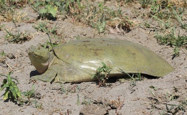 Türkiye’de sadece Fırat ve Dicle nehirleri ile İran, Suriye ve Irak’taki kollarında bulunan yumuşak kabuklu Fırat kaplumbağası, Diyarbakır’ın Bismil ilçesinde bulundu.