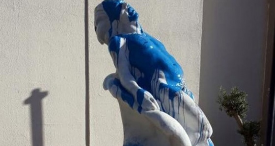 Bursa'nın Nilüfer ilçesindeki özgürlük heykeli ikinci kez boyalı saldırıya uğradı.