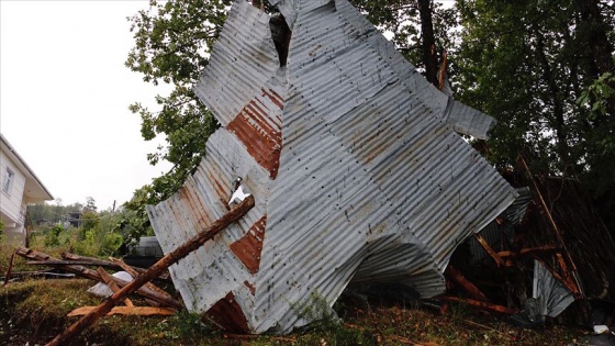 Ordu'nun Akkuş ilçesinde etkili olan şiddetli rüzgar nedeniyle bazı evlerin ve bir okulun çatısı uçtu.