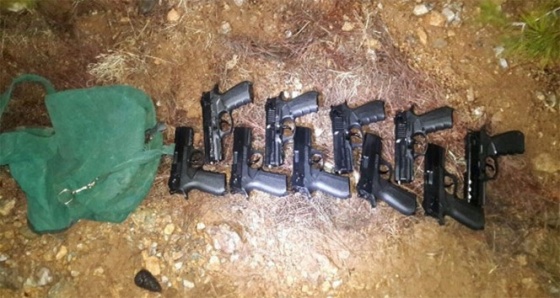 Edinilen bilgiye göre, Denizli İl Emniyet Müdürlüğü ekipleri, seyir tepesi ve teleferik bölgesinde suç ve suçluların tespiti amacıyla uygulama yaptı. Ekiplerin çalışması neticesinde içerisinde şüpheli şahısların olduğu 3 araç tespit edildi. Ormanlık alana doğru kaçan araçlar takibe alındığında bir aracın ışıklarının kapalı vaziyette park halinde olduğu tespit edildi. Park halinde bulunan araç ile çevresini kontrol eden ekipler, aracın yakınlarında şüpheli şahısların gizlemek amacıyla bıraktıkları değerlendirilen kumaş bez çanta içerisinde 10 adet tabanca, şüpheli şahısların üst aramasında 1 adet tabanca ve araçta yapılan aramada 1 adet ruhsatsız tüfek ele geçirdi. Ruhsatsız tabanca tüfek ve 42 adet fişeğe el konuldu.