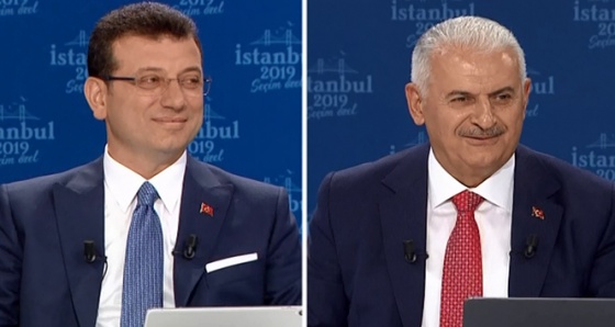 AK Parti İstanbul Büyükşehir Belediye Başkan Adayı Binali Yıldırım ile CHP'nin İstanbul Büyükşehir Belediye Başkan Adayı Ekrem İmamoğlu'nun Lütfi Kırdar Kongre ve Sergi Merkezinde gerçekleştirilen ve bütün kanallara açık olan ortak yayın saat 21.00'de İsmail Küçükkaya moderatörlüğünde başladı.
