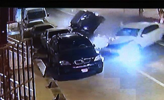 Edinilen bilgiyegöre cadde üzerinde hızla seyreden bir otomobil, park halinde olan araç sürücüsünün bir anda yola çıkmasıyla çarpıştı. Çarpmanın etkisiyle yolda hızla seyreden araç metrelerce ileri savrulurken bu sırada çevredeki 2 araca da hasar verdi.