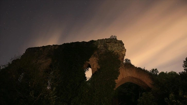 Fotoğraf ve gökyüzü meraklılarının Kültür ve Turizm Bakanlığından özel izin alarak gece girebildiği antik kentte, Perseid meteor yağmurunda da dikkat çekici görüntüler oluştu.