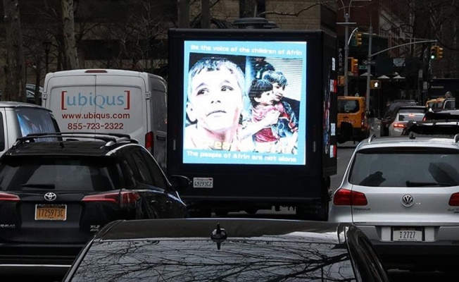 PKK sempatizanlarının New York'ta düzenlediği mitingde, AA'nın Halep'te çektiği yaralı çocuk fotoğraflarının yer aldığı reklam kamyonu, şehrin sokaklarında "Afrin'de siviller tehlikede" yalanıyla dolaştı.