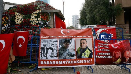 Şehitler için dualar eden vatandaşlar, terör saldırısı sırasında büyük kahramanlık örneği gösteren polis memuru Sekin'in adliye önünde şehit düştüğü yere de karanfiller ve Türk bayrağı bıraktı.