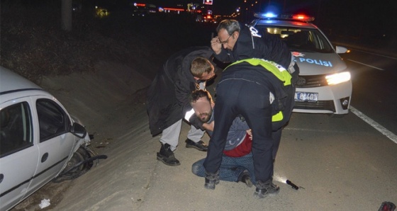 Sürücü Hüseyin K. (37) 181 promil, yanında yolcu olarak bulunan Ahmet B. (26) 195 promil alkollü çıktı. Aşırı süratli olduğu tahmin edilen otomobil refüjü atlayarak, yolun diğer şeridine geçti. Bu sırada karşı şeritten şans eseri bir aracın gelmemesi olası bir faciayı önledi. Kaza sonrası otomobil hurdaya döndü.