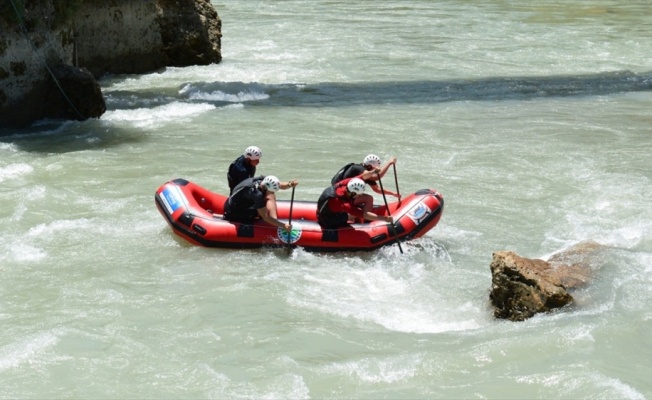 Munzur Çayı'na rafting botlarını indiren ekipler, heyecanla ilk antrenmanını yaptı.