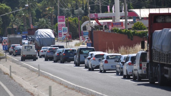 Ramazan Bayramı'nı Aydın'ın Kuşadası ilçesinde geçirmek isteyenler, şehir girişinde uzun araç kuyruğu oluşturdu.