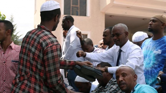 Etiyopyalı Müslümanlar ramazan ayında namaz kılmak için gittikleri camilerde çıkardıkları ayakkabılarını avlularda bekleyen seyyar lostralara temizlenmesi ve boyanması için emanet ediyor.