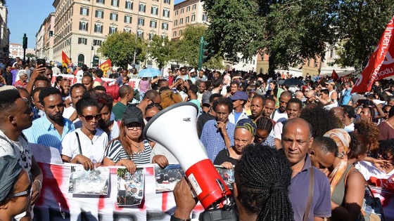 Başkent Roma'daki Esquilino Meydanı’nda toplanan yaklaşık 5 bin kişi, polisin geçen cumartesi ve perşembe günü Indipendenza Meydanı'nda ve meydandaki metruk binada kalan 100 kadar sığınmacıyı çıkartmak için yaptığı sert müdahaleyi protesto etti.