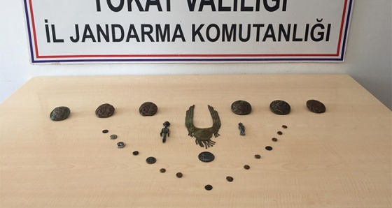 Operasyonda yapılan aramada, aralarında gerdanlık, heykeller ve üzerinde Roma Dönemi'ne ait figürler bulunan toplamda 25 adet tarihi eser niteliğindeki obje bulundu. Ele geçirilen malzemeler Tokat Müze Müdürlüğüne teslim edilirken, şüpheliler tamamlanan işlemlerinin ardından sevk edildikleri adli makamlarca serbest bırakıldı.