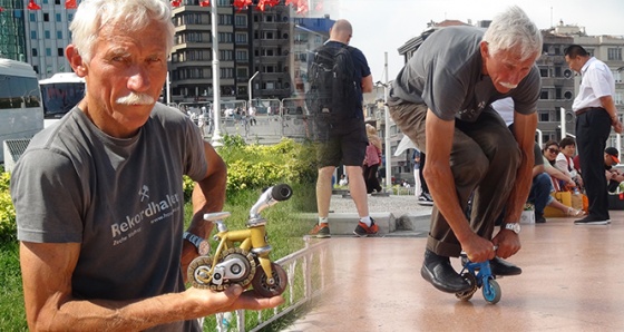 Sergey Daskevshig'in, Taksim Meydanı'nda sergilediği 25, 19, 11.5, 9.5 ve 8.5 santim uzunluğundaki bisikletler büyük ilgi gördü.