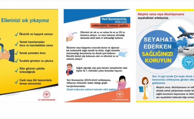 Sağlık Bakanlığı, koronavirüsten korunma yollarını içeren afiş ve broşür hazırladı. Bakanlığın internet sitesinde yer alan broşürde, enfeksiyon riskini azaltmak için öncelikle ellerin sık sık yıkanması önerildi.