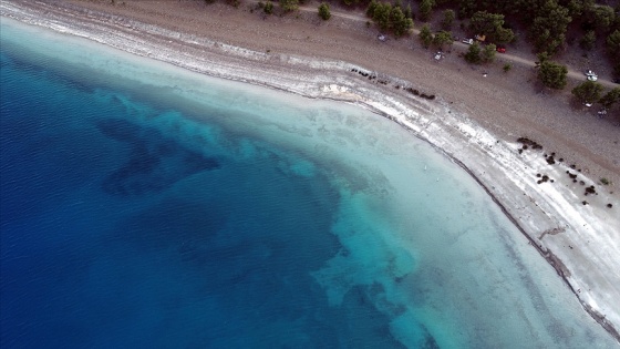 Burdur'un Yeşilova ilçesindeki, beyaz kumsalı ve turkuaz rengi suyunun güzelliğiyle ünlenen Salda Gölü'nde, kıyıya yakın bölgede su altında beliren kalbe benzeyen görüntü, havadan güzel manzara oluşturdu.