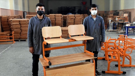 Kırşehir Mesleki ve Teknik Anadolu Lisesi'nin öğretmen ve öğrencileri, yeni tip koronavirüs (Kovid-19) salgınına rağmen fedakarca çalışıp sıra üreterek Anadolu'daki okulların ihtiyacını karşılıyor.
