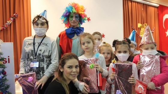 Hastanede tedavi gören yaklaşık 80 çocuk, erken yeni yıl partisinde gönüllerince eğlenme fırsatı buldu.